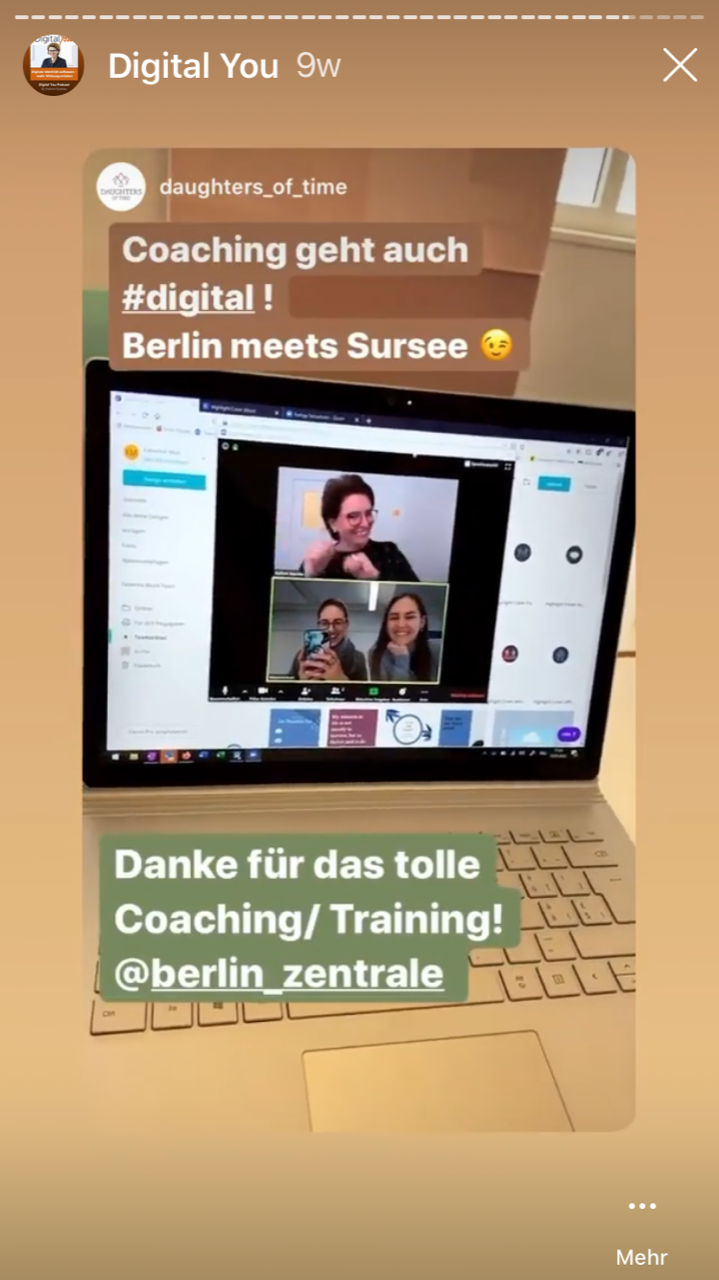 CEO, Executives und Führungspersönlichkeiten treffen Kathrin Koehler sowie weitere Digital You Coaches 1:1 und in Online-Sessions, ganze Teams arbeiten in mehrwöchigen Boot Camps. Dabei kommen wir ausschließlich digital zusammen – auch auf diese Weise geht es sehr persönlich zu.
