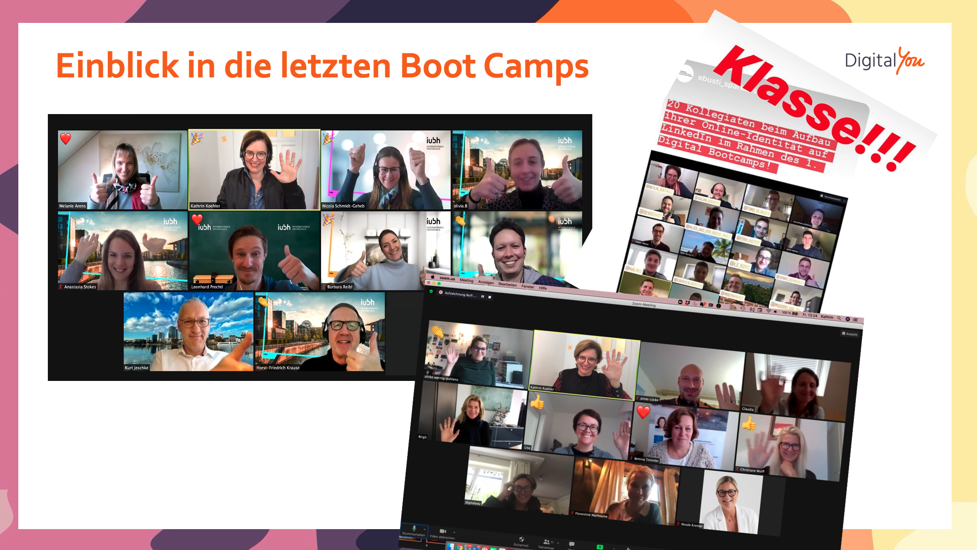 Mit mehr Sicherheit zu mehr Sichtbarkeit. Das kannst Du im Boot Camp für Dich konkret umsetzen und das haben mehr als 400 Boot Camper:innen vor Dir erreicht.