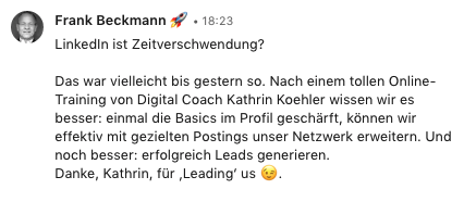 "Das individuelle Digital Coaching von Kathrin Koehler ist sehr empfehlenswert.