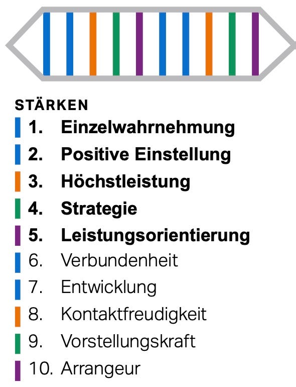 Im Vorfeld machst Du Deine Stärkenanalyse online mit CliftonStrenghts von Gallup. Für € 55 Euro erhältst Du einen ausführlichen Report, der die Grundlage für unsere Zusammenarbeit bildet.