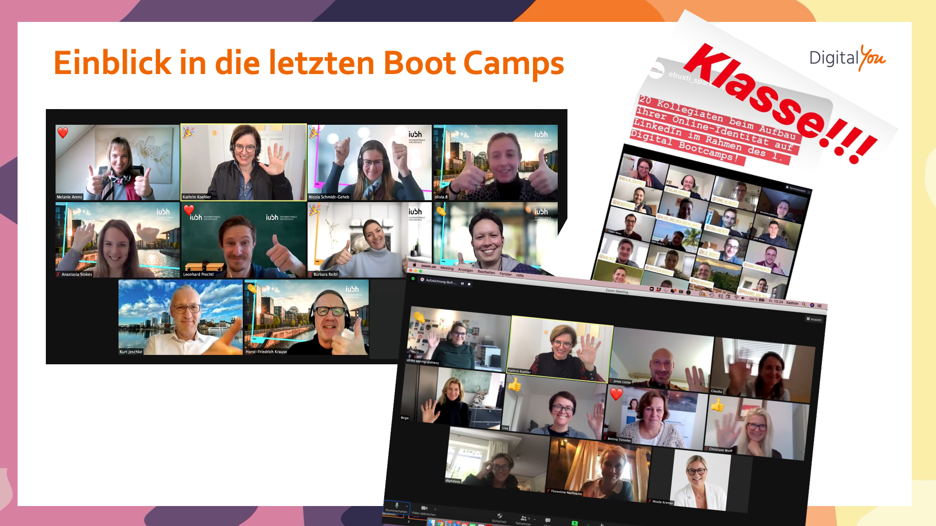 Alle vereint, dass sie vom lebenslangen Lernen und persönlichem Wachstum außerhalb der eigenen Komfortzone überzeugt sind und das vernetzte Arbeiten und die digitale Selbstvermarktung besser kennenlernen wollen.