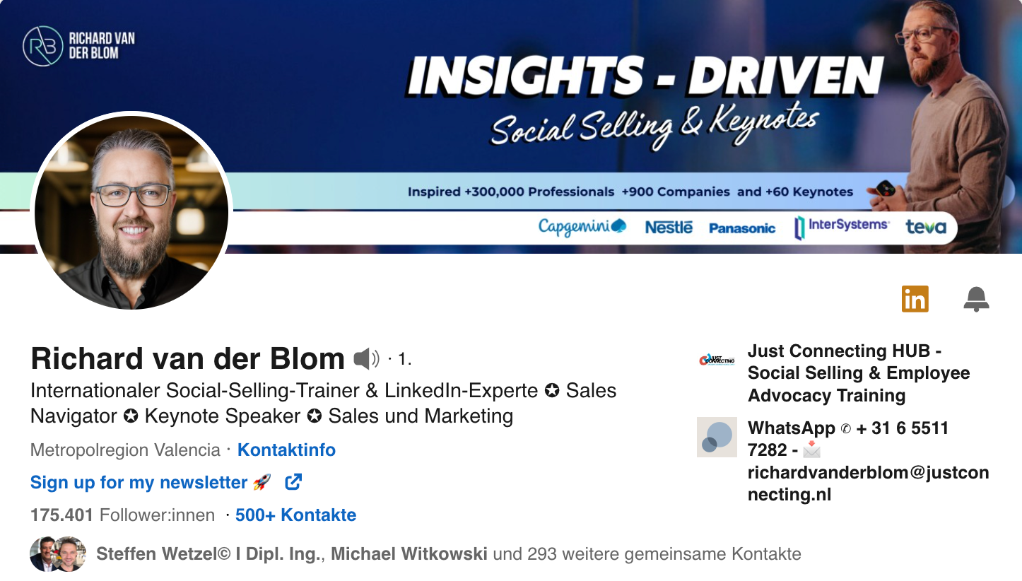 Richard van der Blom ist Europas führender B2B-Experte für den Einsatz von LinkedIn™ in großen Corporates, Organisationen und im Mittelstand.